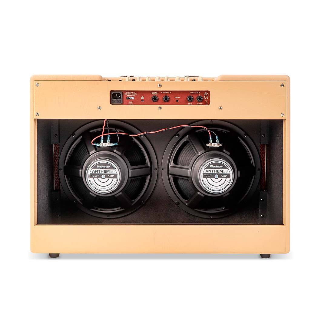 Amplificador para guitarra eléctrica Blackstar Debut 100R 2x12 Combo Cream. Debut 100R lleva la gama Debut unos cuantos pasos mas allá., es simple y elegante. Ideal para todo tipo de guitarristas, desde el aficionado hasta el profesional exigente, el Debut 100R se centra en el tono y la facilidad de uso en lugar de incorporar prestaciones no deseadas. Debut 100R cubre todas tus necesidades tanto para ensayar como para tocar en directo, con un conjunto de características cuidadosamente seleccionadas que incluyen dos canales conmutables con pedal, nuestro control de tono ISF patentado, reducción de potencia y reverberación digital integrada. Para ofrecer la respuesta de sonido natural de un amplificador de válvulas, nuestro equipo de diseño con sede en Northampton ha implementado un preamplificador MOSFET. Las características de saturación de los MOSFET tienen un comportamiento muy similar a la respuesta sonora de las válvulas, y en esta ocasión Blackstar ofrece un diseño de preamplificador que es prácticamente indistinguible de las válvulas.