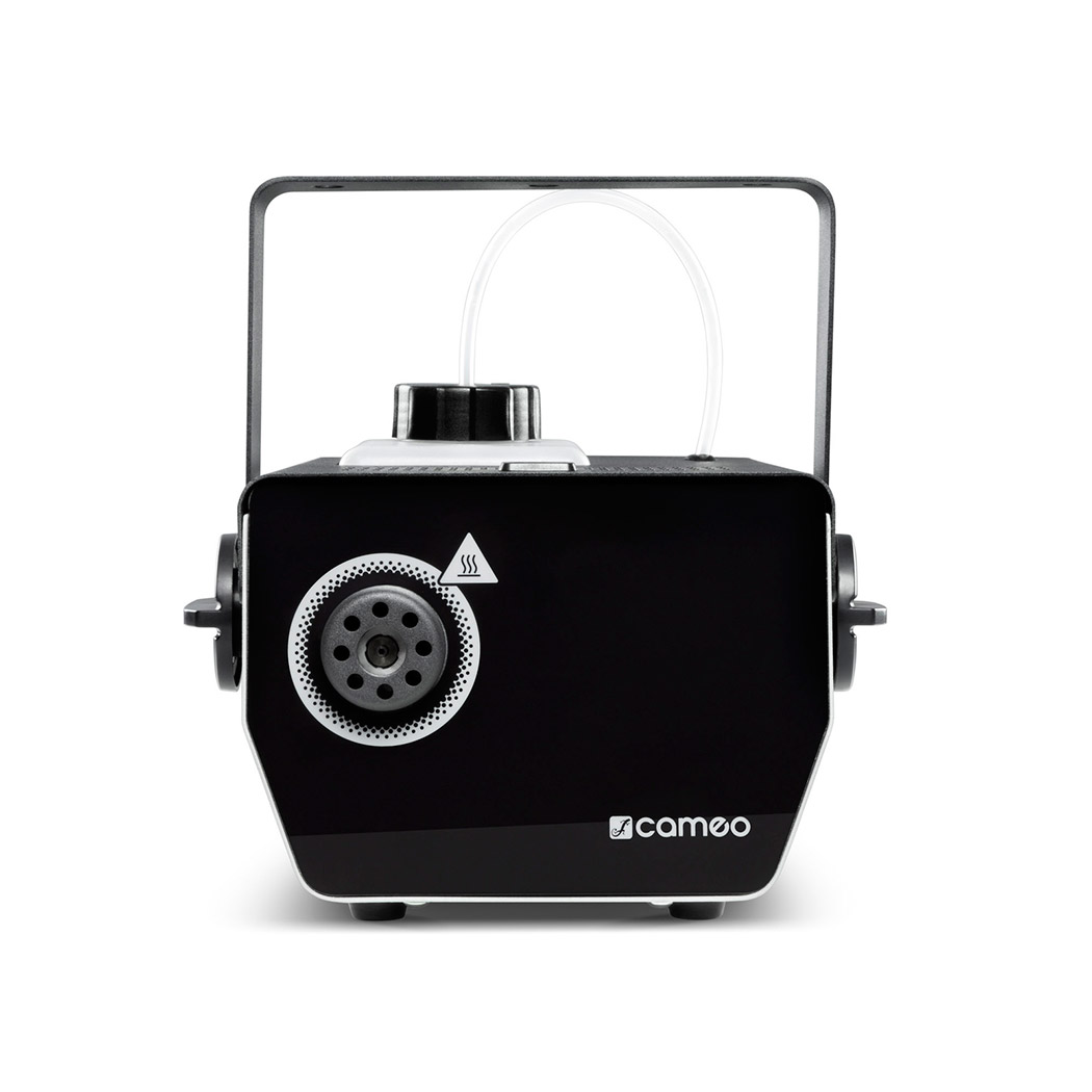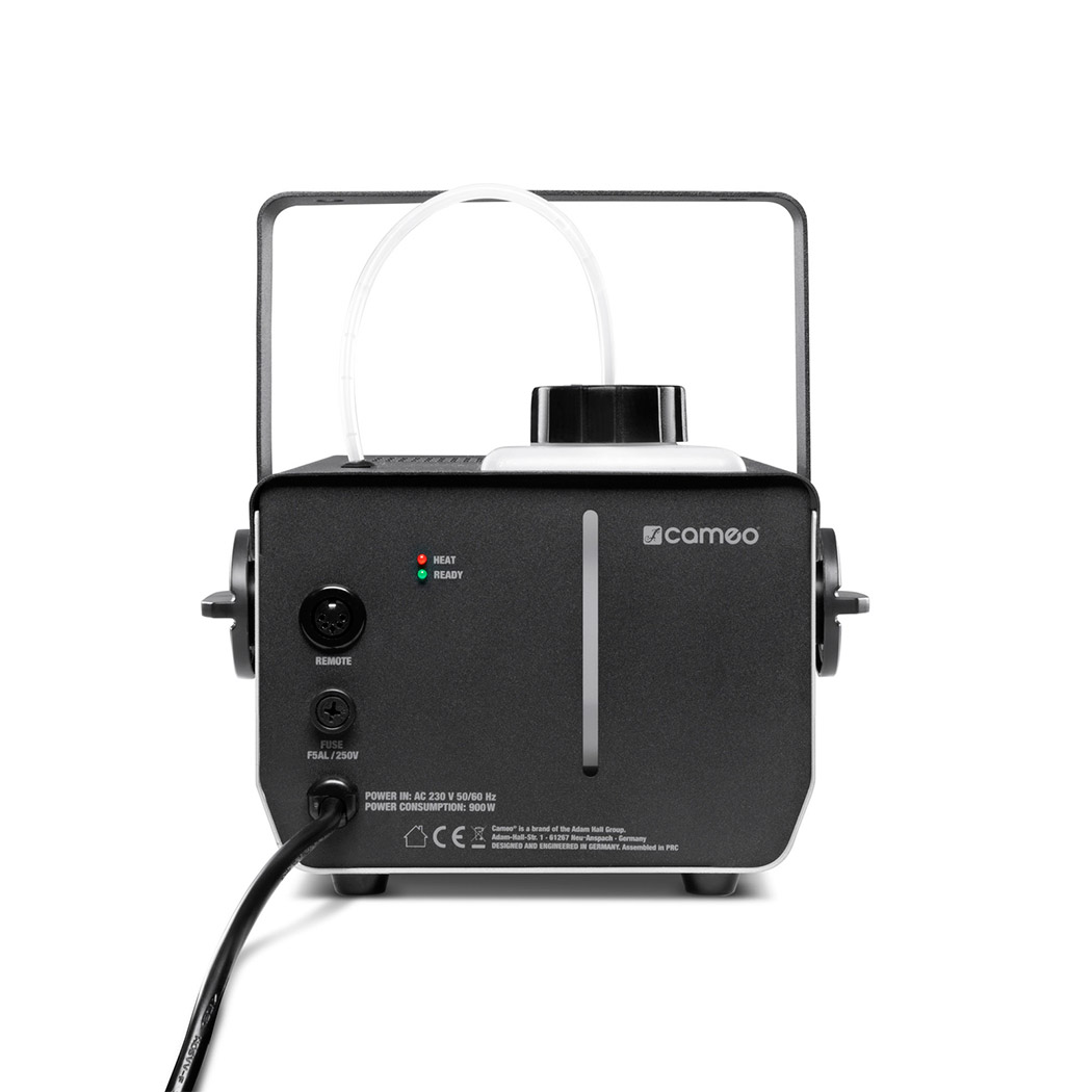Máquina de niebla Cameo Phantom F3 con una potencia de calentamiento de 950 W y depósito de líquido con iluminación interior.