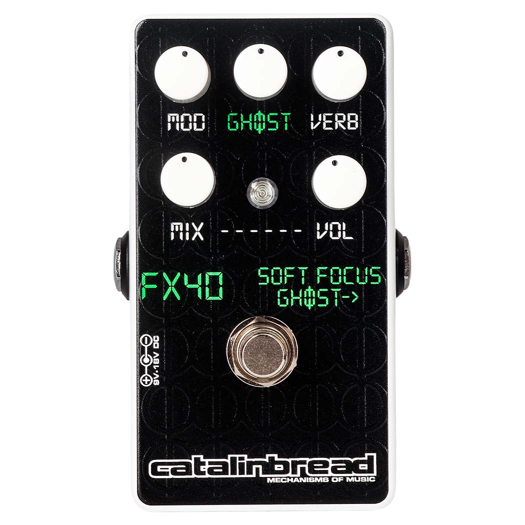 Pedal de reverb para guitarra Catalinbread Soft Focus Ghost. El mito en torno al Yamaha FX500 es bien conocido, pero fue el FX500B, la versión para bajos, el que inspiró toda la serie Ghost, ya que el modelo que poseía Catalinbread cambiaba los patches aleatoriamente, a menudo hacia ajustes que nunca antes habían oído. Este error mecánico dio lugar a la serie Ghost, al insertar nuevos sonidos en la arquitectura de un efecto olvidado.