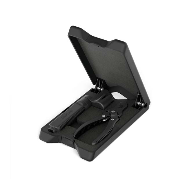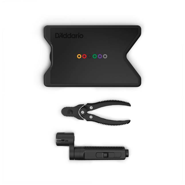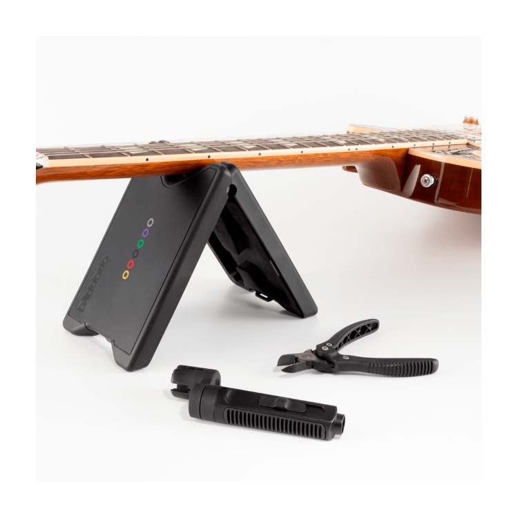 El kit de cambio de cuerdas de grado profesional de D'Addario garantiza un cambio de cuerdas profesional en cualquier entorno. El enrollador de cuerdas utiliza un casquillo con rodamiento de bolas de alta calidad para girar fácilmente cualquier clavija de afinación y cuenta con un extractor de clavijas de puente con diseño de pinza que captura las clavijas de puente al retirarlas. El cortador de cuerdas cuenta con cuchillas endurecidas de larga duración y un diseño de acción compuesta que proporciona más de siete veces la fuerza de corte de los alicates estándar, lo que facilita cortar incluso las cuerdas más gruesas con facilidad. Ambas herramientas vienen en un estuche duradero y sobremoldeado, que también sirve como soporte de mástil, para que los músicos, luthiers y técnicos tengan todo lo que necesitan para cambiar las cuerdas como un profesional.