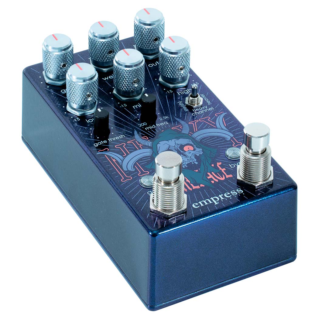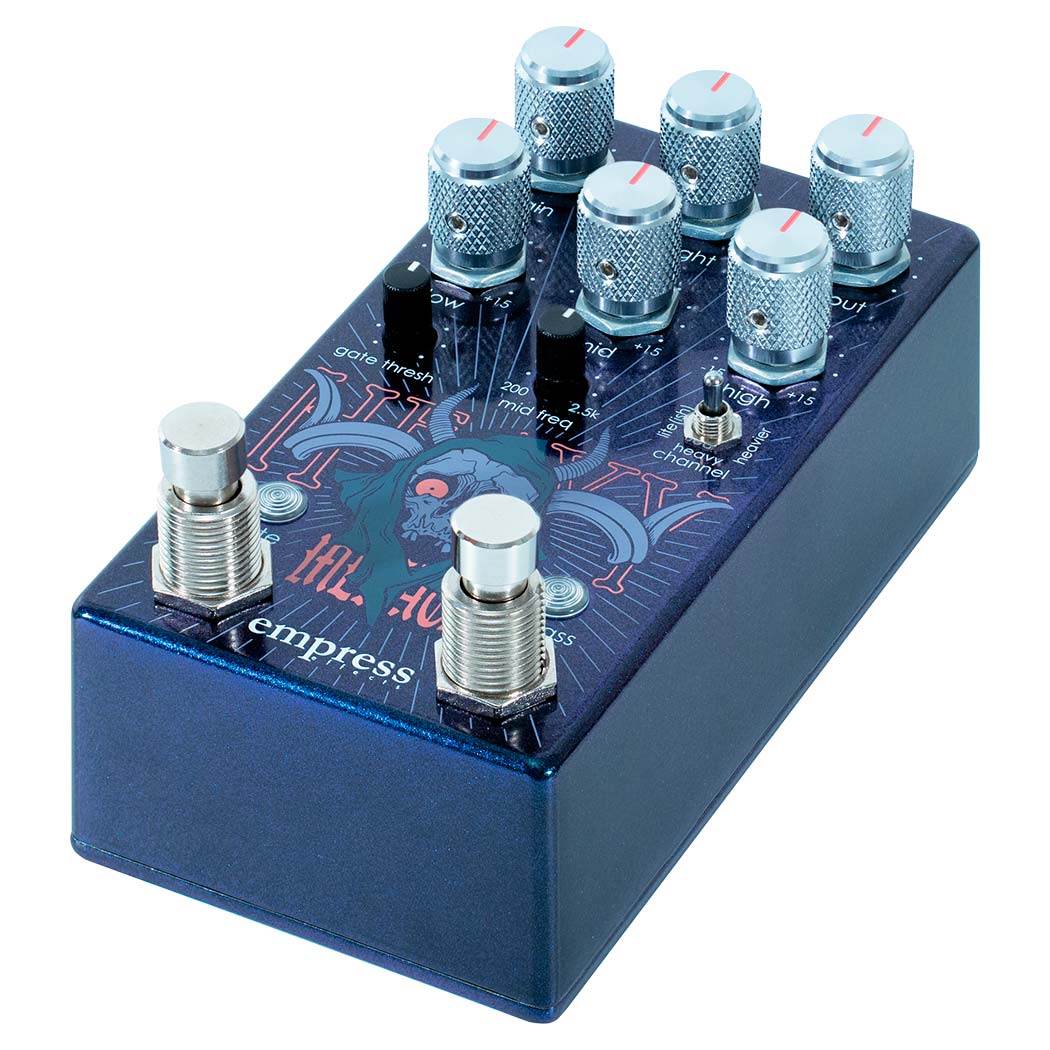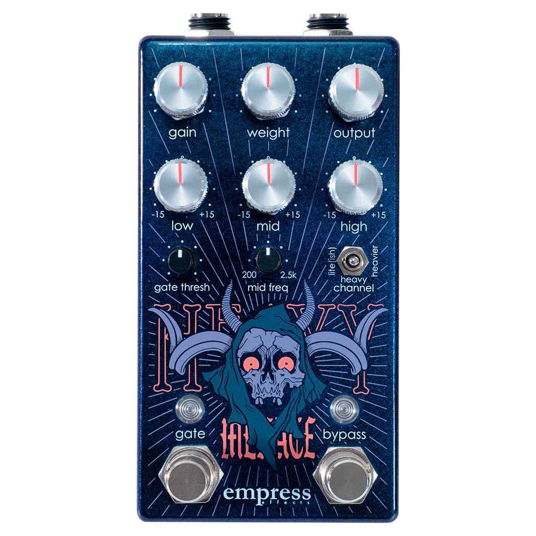 Pedal de distorsión de Edición Limitada Empress Effects Heavy Menace LTD. Edición limitada a 350 unidades en todo el mundo del Heavy Menace, con un nuevo diseño y en un exclusivo color azul-púrpura opalescente.