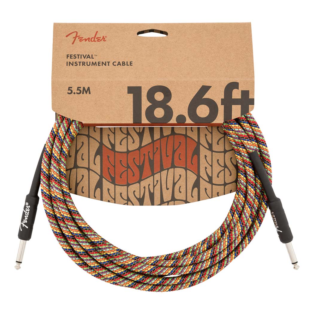 Cable para guitarra Fender Festival Instrument Cable Straight/Straight 18.6' Rainbow. Coloridos y divertidos, los cables de instrumento Fender Festival están fabricados con materiales respetuosos con el medio ambiente para una sensación auténtica y personalizada. Estos cables cuentan con un sonido superior y extremos moldeados a medida, junto con un estilo exclusivo de edición limitada. El blindaje en espiral está construido con cobre libre de oxígeno para un audio cristalino.