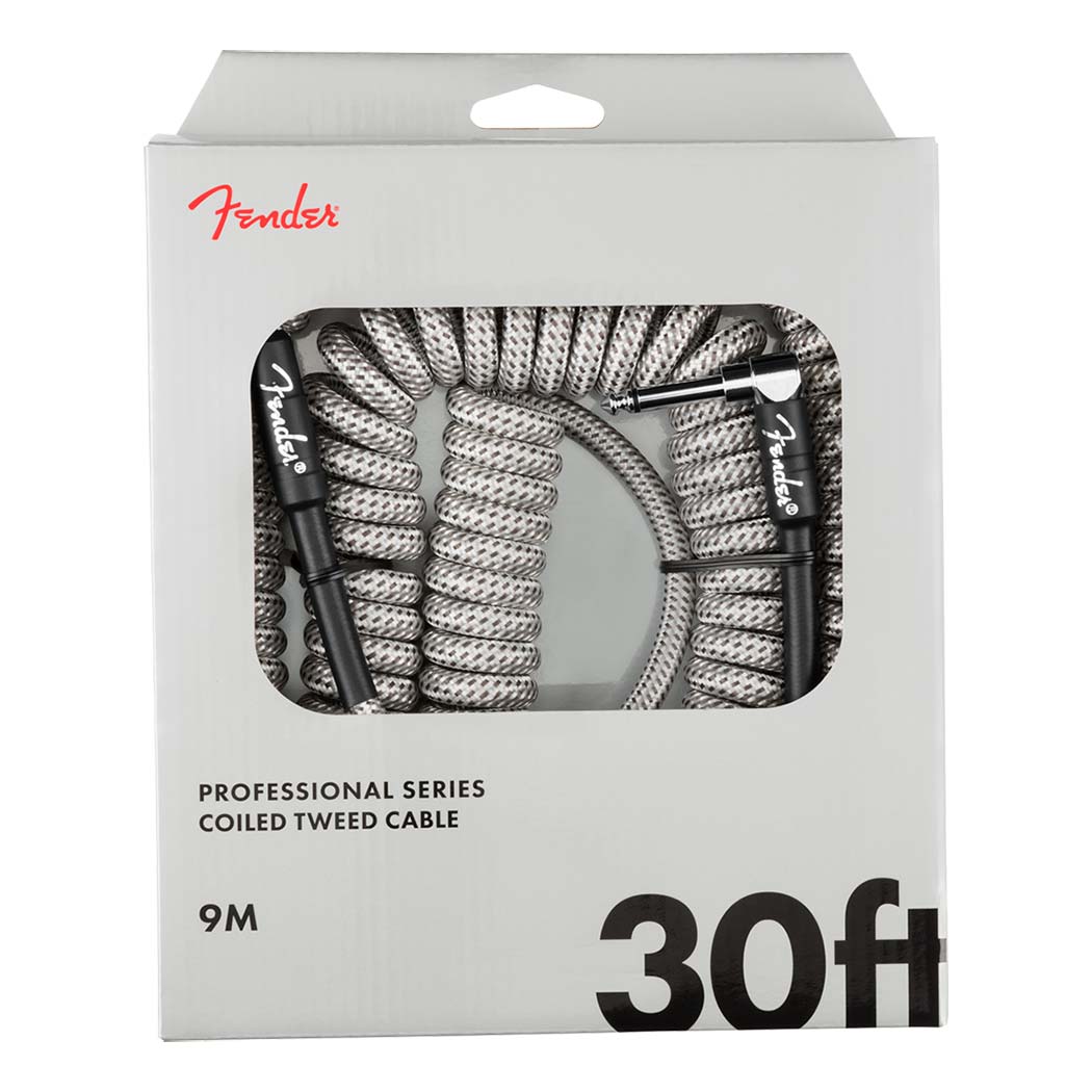 Cable para guitarra Fender Pro Series Coil Cable 30' White Tweed. Por primera vez en Fender, hemos logrado envolver cables de instrumento en espiral con tweed duradero: un clásico atemporal de Fender. Diseñados para ofrecer un sonido transparente, estos cables soldados a mano cuentan con un núcleo de calibre grueso con componentes de alta calidad para preservar tu tono. El blindaje en espiral está construido con cobre libre de oxígeno para un rendimiento libre de ruido.