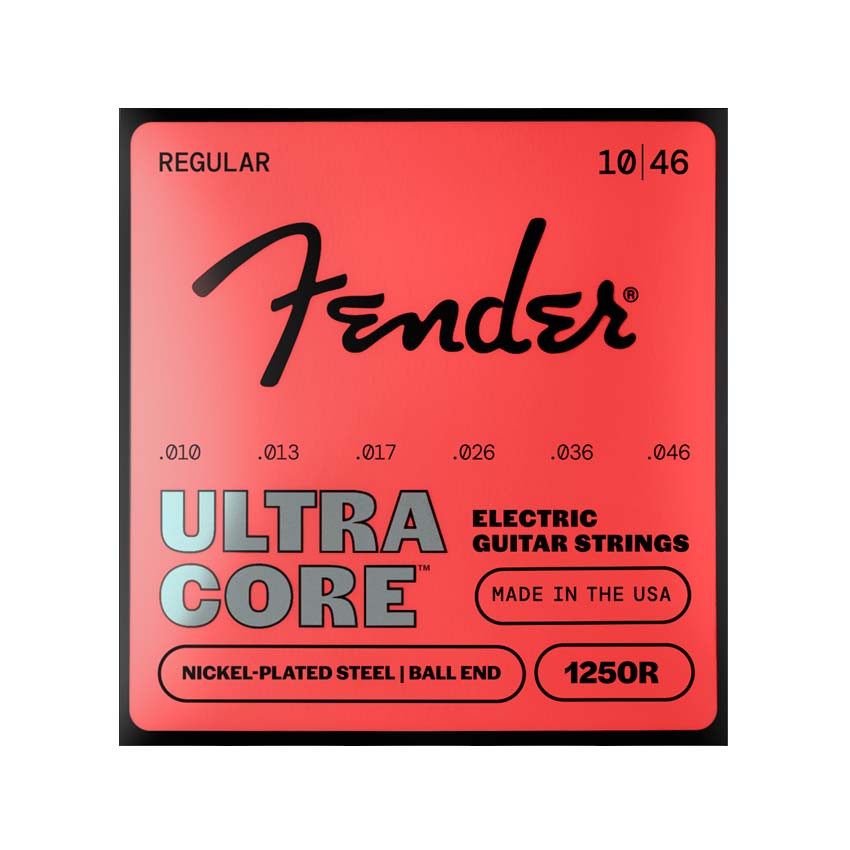 Juego de cuerdas para guitarra eléctrica Fender Ultracore 1250R Nickel-Plated Steel 010-046. Las cuerdas UltraCore™ de acero niquelado están diseñadas para guitarristas exigentes, ofreciendo una sensación refinada, claridad definida y afinación estable. El núcleo de acero de alto carbono UltraCore™ reforzado asegura un control de afinación firme y una resistencia inigualable bajo presión. Recubiertas de acero niquelado premium, ofrecen mayor durabilidad, mejor tono y definición precisa en cada nota.