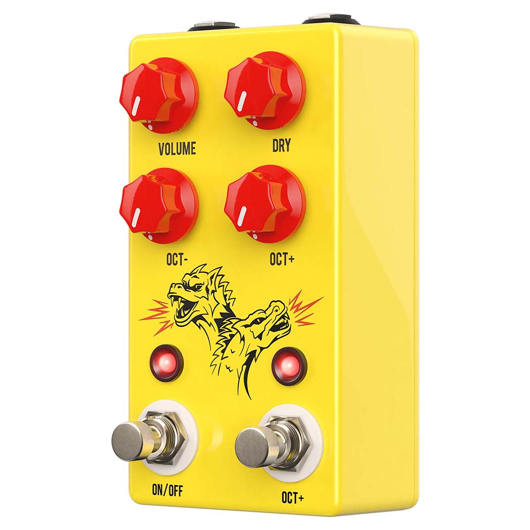 Pedal octavador analógico para guitarra JHS Pedals Double Dragon. El Double Dragon está inspirado en la tecnología analógica de cambio de octava de hace 40–50 años. Lejos de la precisión digital moderna, este pedal apuesta por el comportamiento orgánico, impredecible y musical que hizo legendarios a los clásicos circuitos vintage.