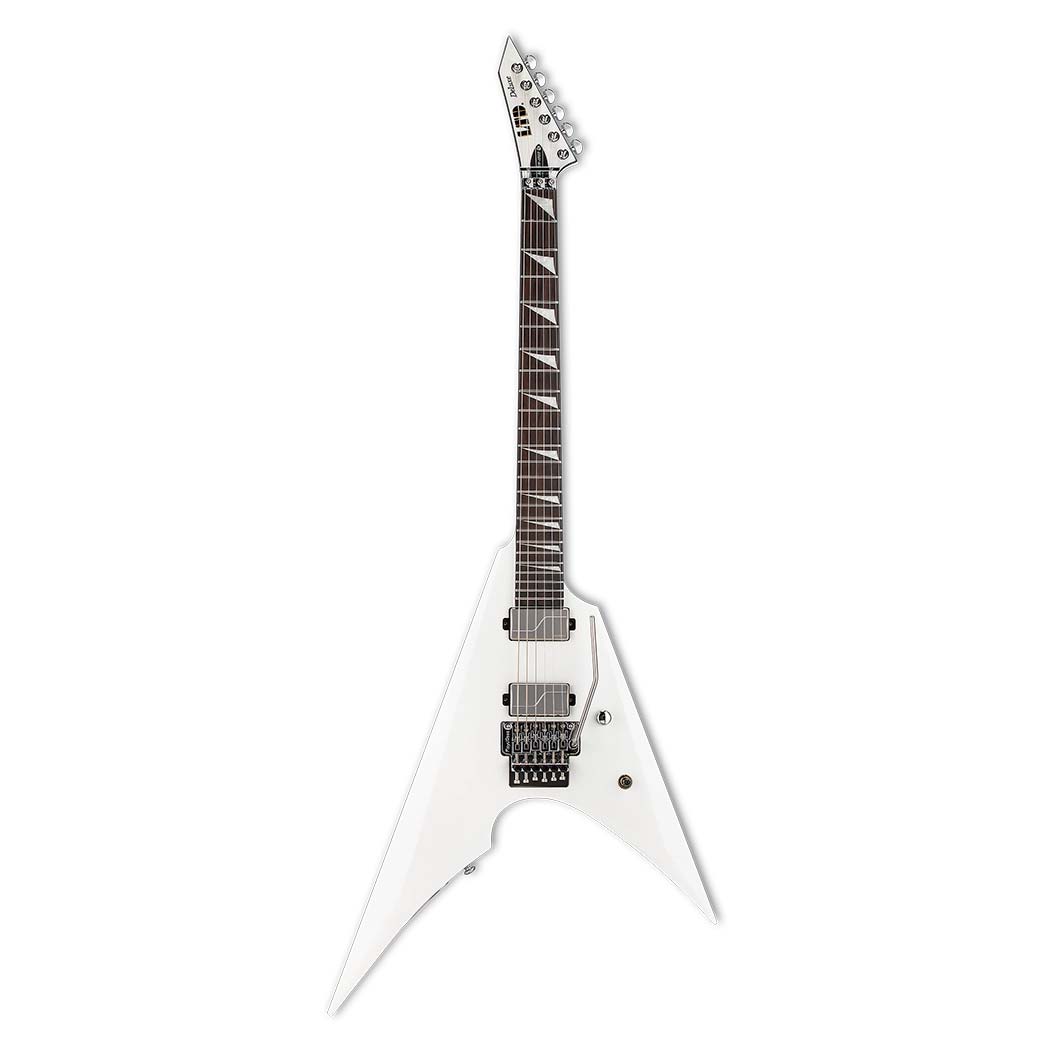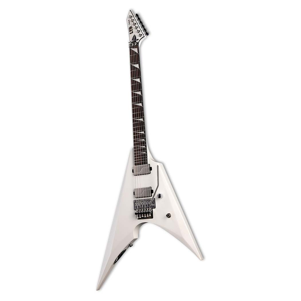 La LTD Deluxe Arrow-1000 está diseñada para guitarristas profesionales que exigen tonos versátiles, una jugabilidad fluida y fiabilidad total para grabaciones y giras. Este modelo destaca por su acabado Pearl White brillante y su forma en "V" completamente única con cuerpo biselado.