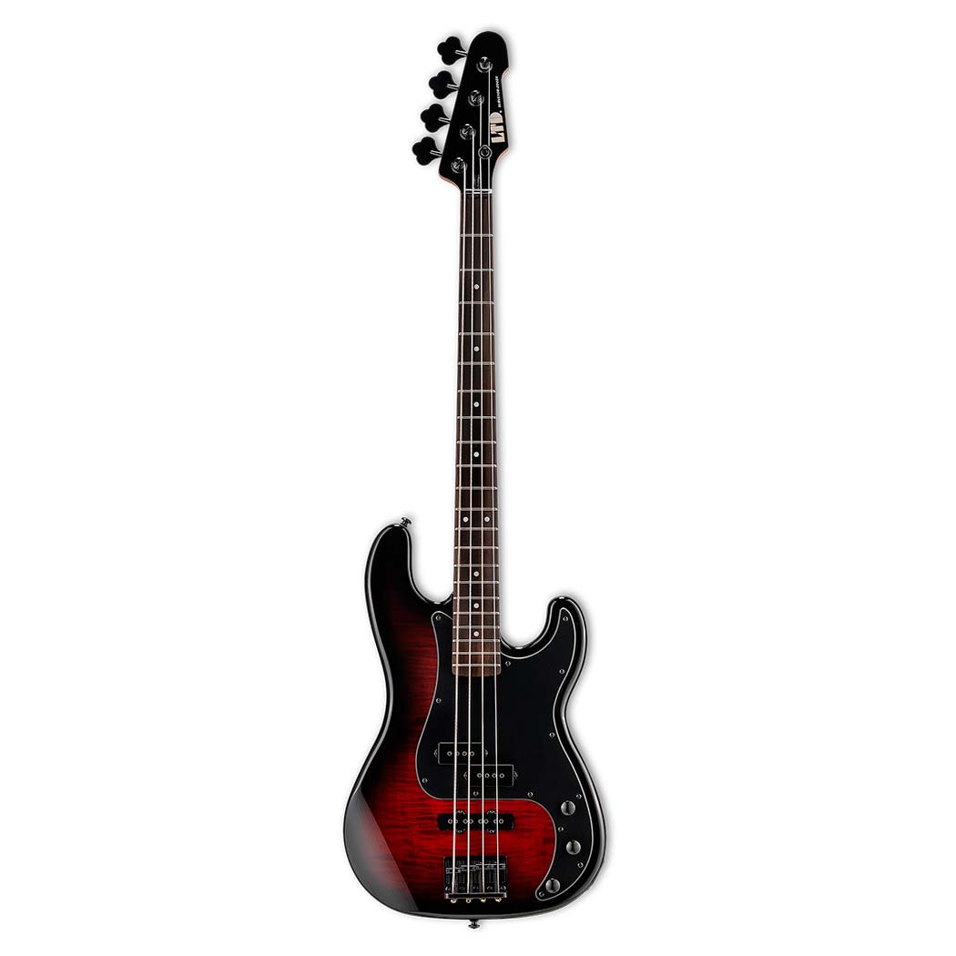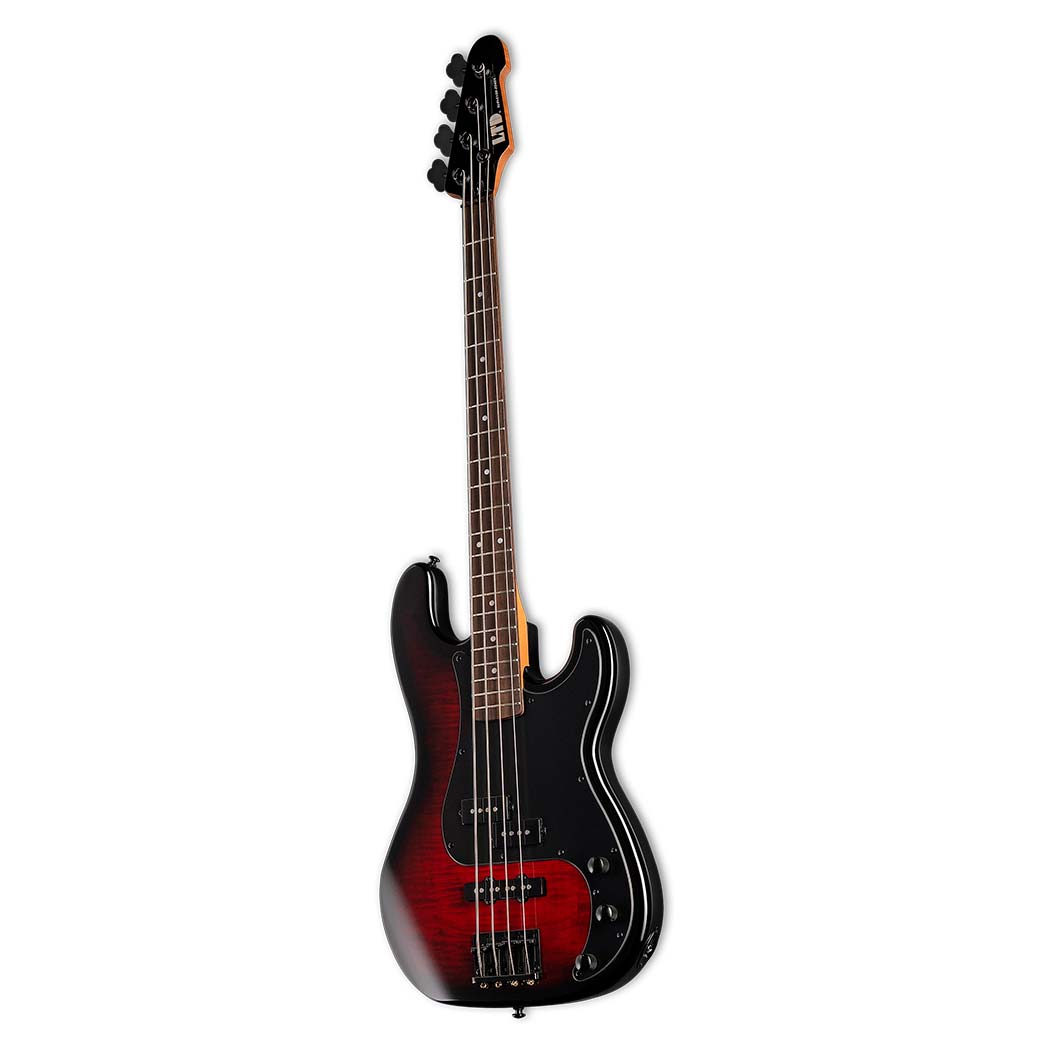 El LTD Surveyor-204DX toma la forma clásica de los bajos ESP y la combina con la calidad superior y el alto valor característicos de la serie LTD. Este instrumento está construido con una estructura de mástil atornillado (bolt-on) y una escala de 34", ideal para una tensión de cuerda equilibrada y un tono definido. Su cuerpo de álamo ligero y resonante cuenta con una espectacular tapa de álamo burl (nudo de álamo), que ofrece una estética única gracias a las vetas y nudos de la madera que resaltan bajo su acabado transparente Red Burst. Además, incorpora un mástil de arce tostado especialmente suave y cómodo, acompañado de un diapasón de palosanto con 21 trastes extra-jumbo. En el apartado electrónico y de hardware, el Surveyor-204DX viene equipado con herrajes negros, puente fijo LTD DB-4 y un set de pastillas ESP LJB (puente) y LPB (mástil). El control es total gracias a su configuración de volumen, balance y el sistema de realce de tono (Tone Boost).