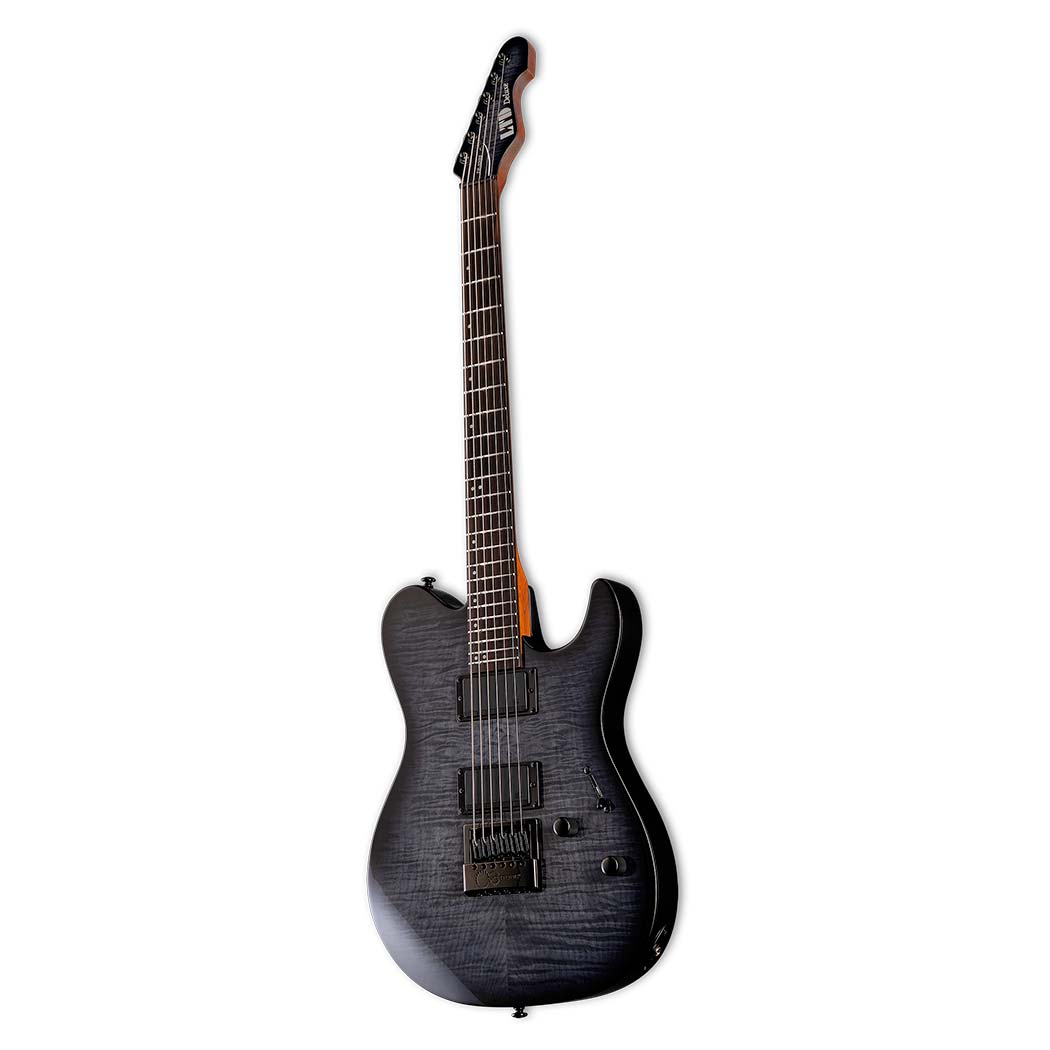 Construida con un diseño de mástil atornillado (bolt-on) a escala 25.5", combina un cuerpo de fresno de pantano con una llamativa tapa de arce flameado. El mástil de arce tostado de tres piezas tiene un contorno "Thin U" y cuenta con un diapasón de ébano Macassar con 24 trastes extra-jumbo de acero inoxidable.