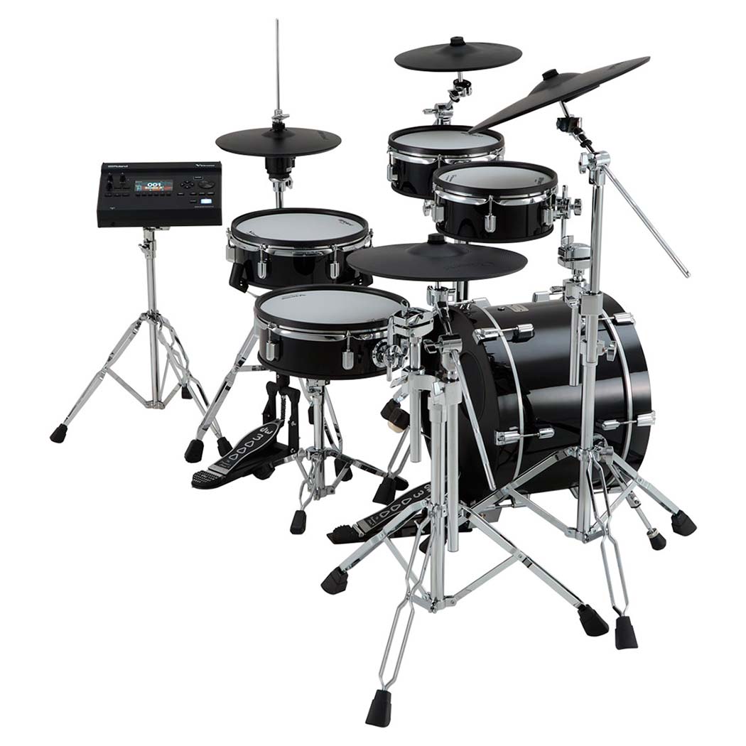 Batería electrónica Roland VAD316 V-Drum Kit. La VAD316 lleva la aclamada experiencia V-Drums Acoustic Design a la serie V-Drums 3. Con cascos de madera estrechos para los toms y un bombo de tamaño completo, este kit ofrece la presencia en directo, las sensaciones y la disposición familiar de un set acústico tradicional, pero con un control absoluto del volumen. Además, el módulo de sonido V31 proporciona una interpretación soberbia, avanzadas herramientas didácticas y conectividad inalámbrica para tocar, aprender y ampliar los sonidos a lo grande. Tanto para practicar en casa como para tocar en directo o grabar en estudio, la VAD316 combina detalles acústicos prémium con tecnología V-Drums de última generación para que disfrutes de lo mejor de cada mundo.