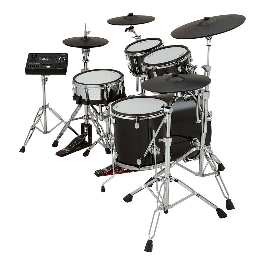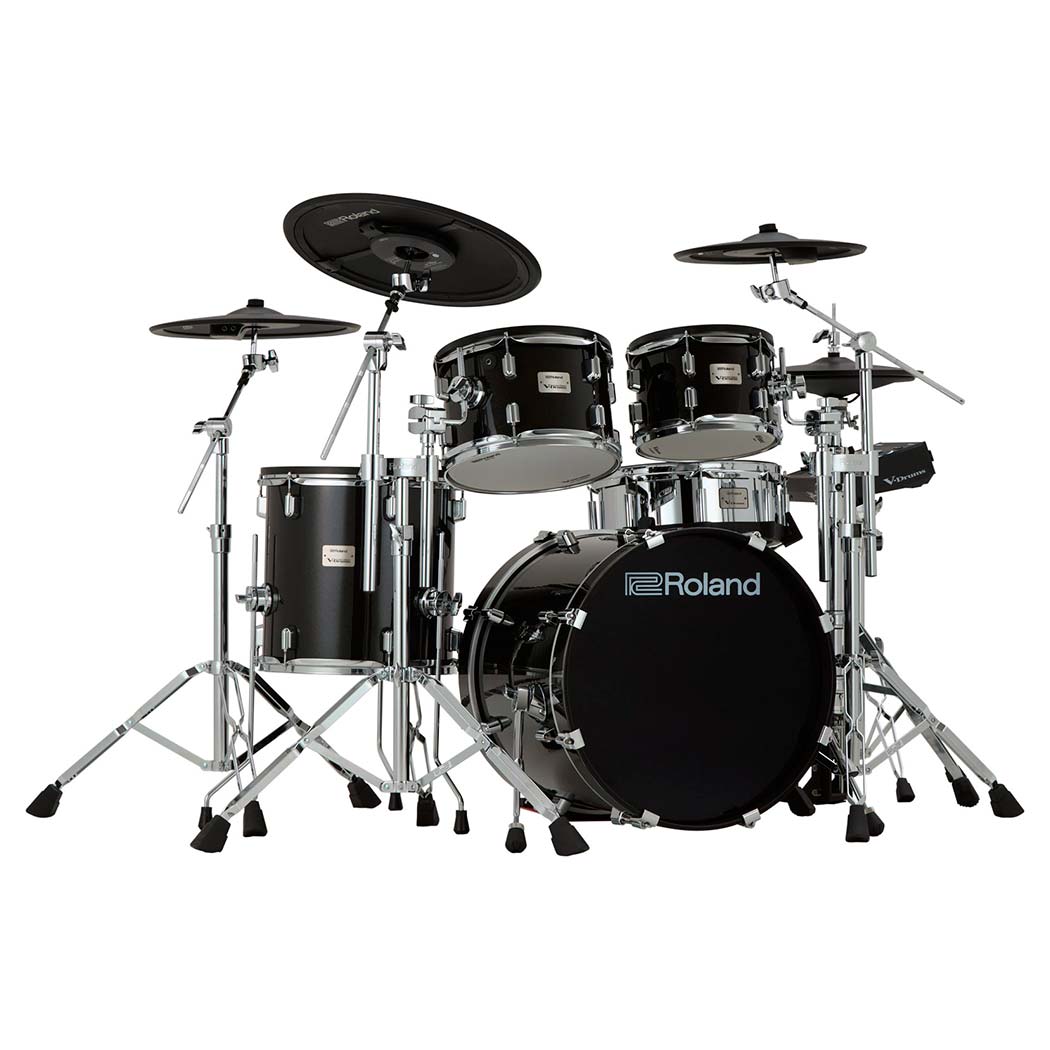 Batería electrónica Roland VAD516 V-Drum Kit. El kit VAD516 V-Drums Acoustic Design es el modelo superior de la serie V-Drums 5 y ofrece la inmersión que te dan el look, las sensaciones y la presencia en directo de un set acústico completo, además de la sofisticada potencia del módulo V51. Con cascos de madera de tamaño completo, pads digitales prémium y conectividad de estudio, está pensado para los músicos exigentes que busquen una estética tradicional sin renunciar a la flexibilidad de las baterías electrónicas modernas. Desde directos hasta grabaciones de estudio y creación de contenido en casa, el kit VAD516 ofrece la expresión y el detalle que esperas de un kit acústico, además del control y el valor práctico que tanta fama han dado a las V-Drums.