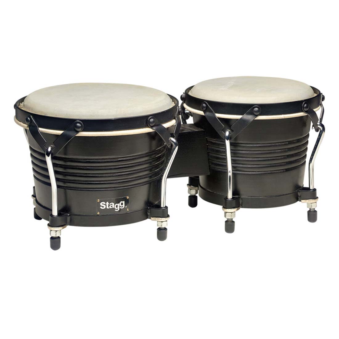 Bongós latinos negros de 7,5" y 6,5" Stagg BW-200-BK Wood Bongo.