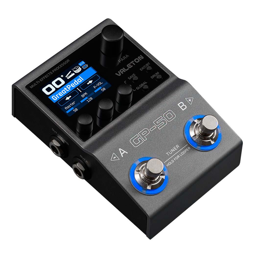 Pedal multiefectos para guitarra Valeton GP-50. El nuevo Valeton GP-50 llega para posicionarse de forma contundente en el rango de los multiefectos compactos. Tomando como punto de partida el exitoso GP-5, esta nueva generación ofrece más potencia, más control y más formas de tocar, pero manteniendo un formato portátil que cabe sin problemas en cualquier pedalera o mochila.