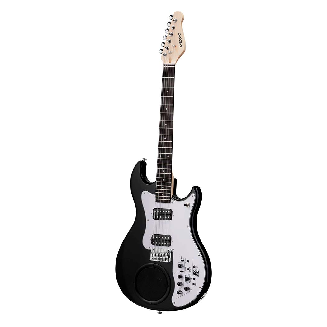 Guitarra eléctrica con amplificador Vox APC-2 Black. Guitarra eléctrica todo en uno con amplificador, efectos, ritmos y altavoz integrados, diseñada para tocar en cualquier lugar sin necesidad de cables, pedales ni amplificador externo. Combina el sonido clásico VOX con un diseño moderno y portátil, ofreciendo una experiencia completa de interpretación y práctica en un solo instrumento.